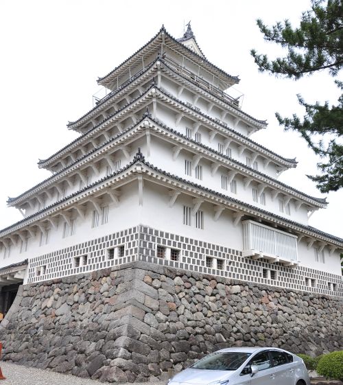 ► This five-story white building is a Flatland castle, located between Ariake Bay and Mount Unzen.